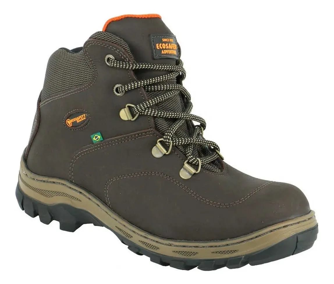 Bota Ecosafety Adventure PS-410 de Segurança e Trilha Unissex em Couro com C.A – Proteção Certificada para Trabalho e Aventura