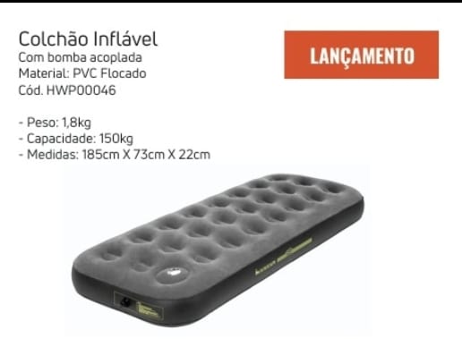 O Colchão Inflável Hawapi solteiro é a escolha ideal para quem busca conforto, praticidade e boa noite de sono em acampamentos, viagens ou uso ocasional em casa. Desenvolvido para duas pessoas, ele oferece excelente estabilidade, isolamento do solo e montagem rápida, tornando a experiência outdoor muito mais confortável.