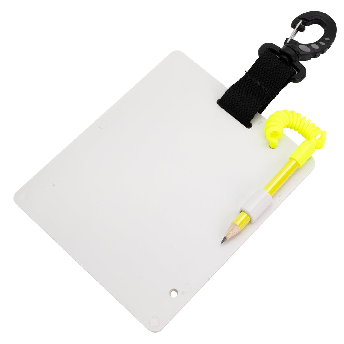 Fabricada com material resistente e durável, a prancheta possui superfície própria para escrita subaquática, permitindo o uso de lápis para fazer anotações mesmo durante o mergulho. Seu sistema de fixação com elástico facilita o uso no pulso ou no equipamento, garantindo acesso rápido sempre que necessário.